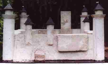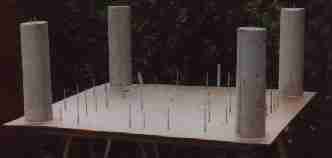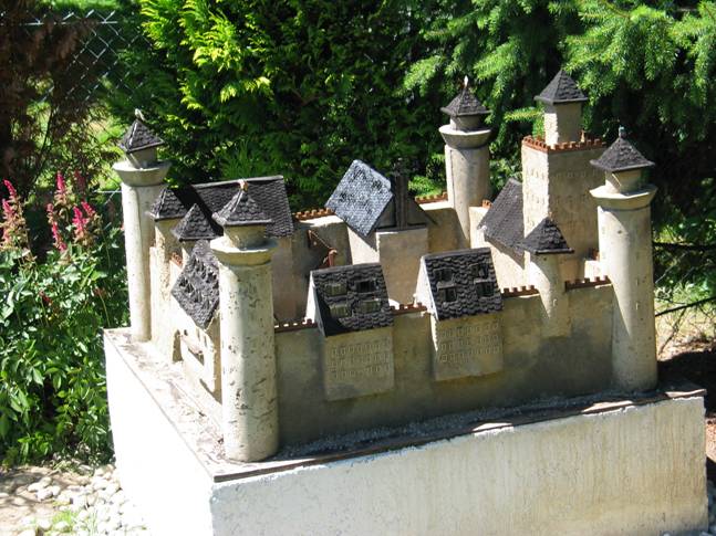 Nun war der König nicht mehr zu bremsen. Er arbeitete Tag und Nacht. Er schleppte Steine, rührte Mörtel an, wehrte drei Angriffe feindlicher Könige ab und mauerte, dass die Steine nur so flogen. Und kaum war ein Mond vergangen, so standen bereits die vier Ecktürme stolz im Zentrum des Königreiches. |